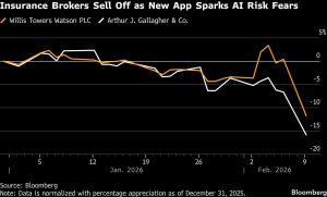 US insurance broker stocks faced a significant downturn on Monday, primarily triggered by the introduction of an artificial intelligence tool from Insurify,...